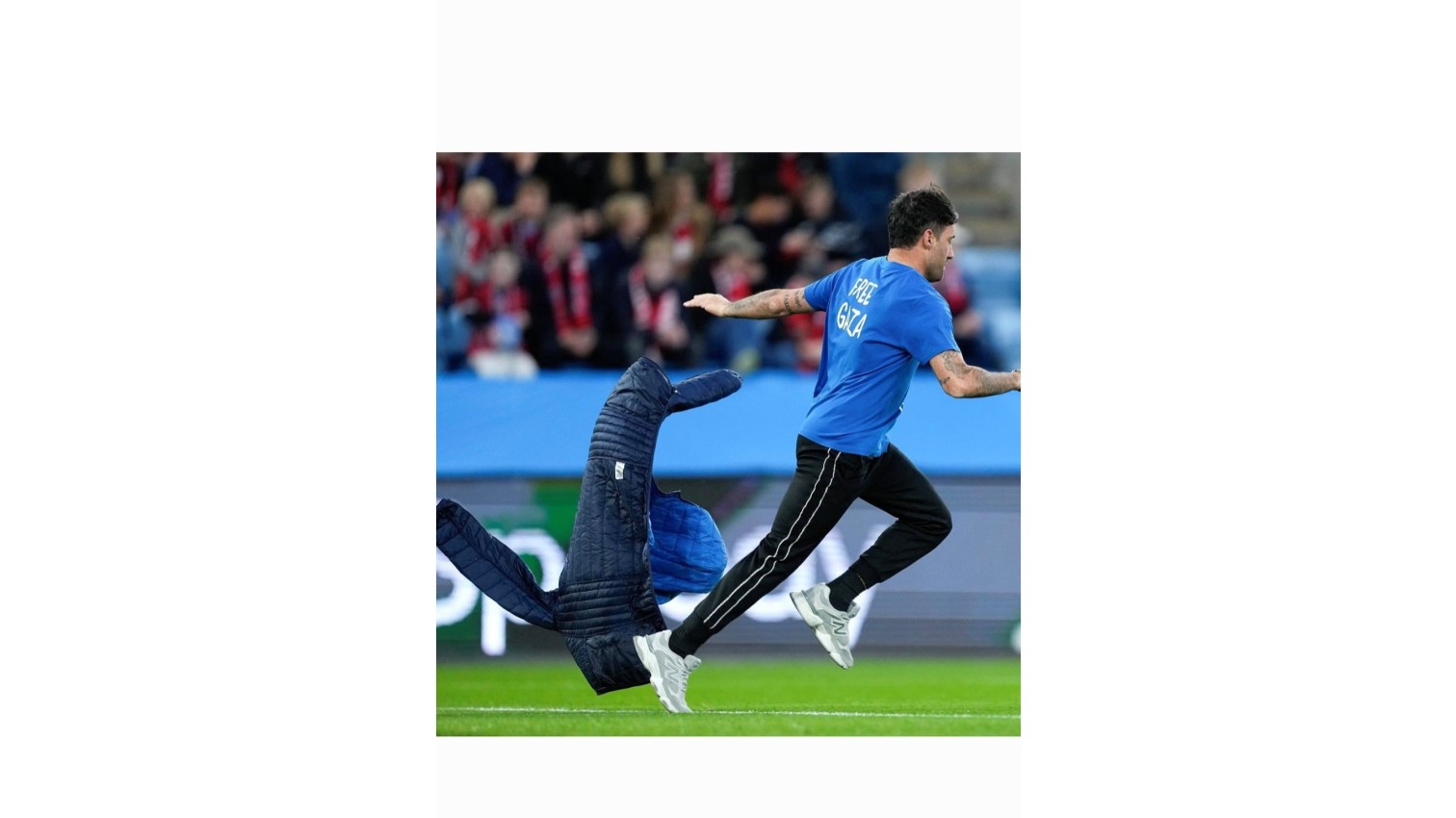 📌Matç zamanı azarkeşlərdən biri üzərində "Qəzzaya müstəqillik" sözü yazılan geyimlə meydana çıxıb.