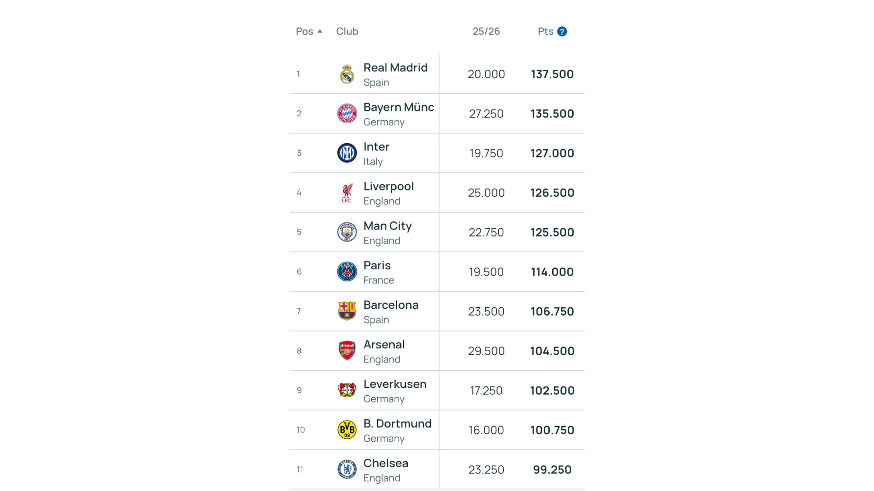 Supersport.Az-ın məlumatına görə, UEFA-nın klub reytinqi yenilənib.